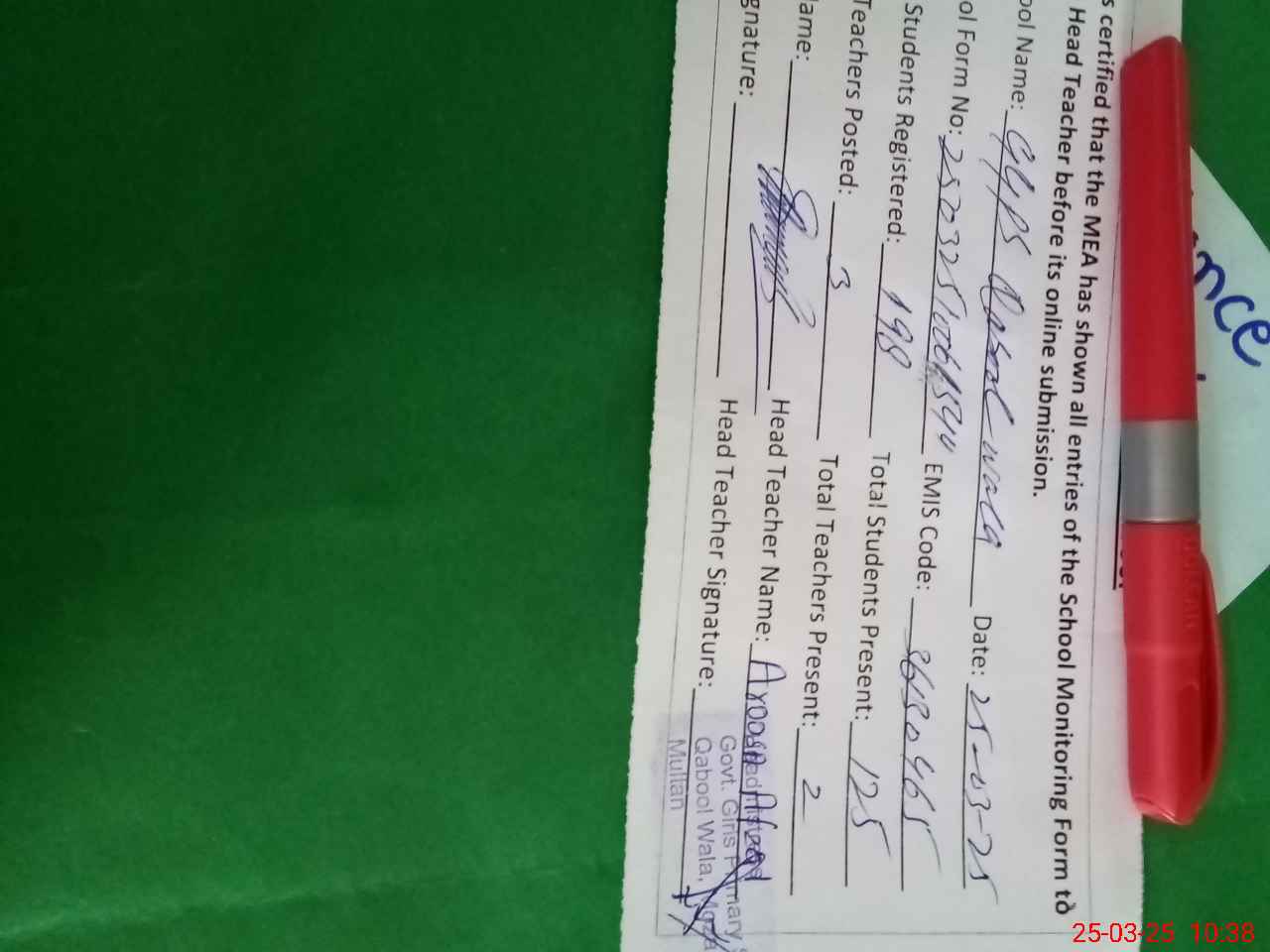 | EMIS Code: 36130465 | Name of School: GGPS QABOOL WALA MUZA LABER MULTAN | |||