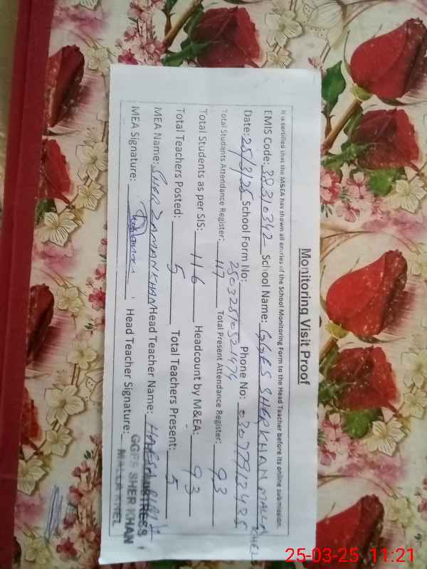 | EMIS Code: 38310342 | Name of School: GGES SHER KHAN MALLA KHEL | |||