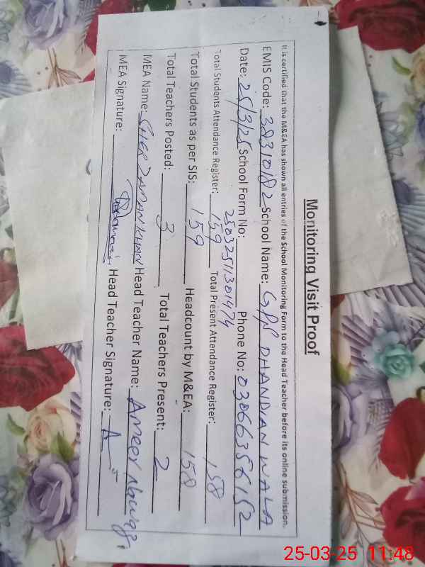 | EMIS Code: 38310182 | Name of School: GPS DHANDIAN WALA | |||