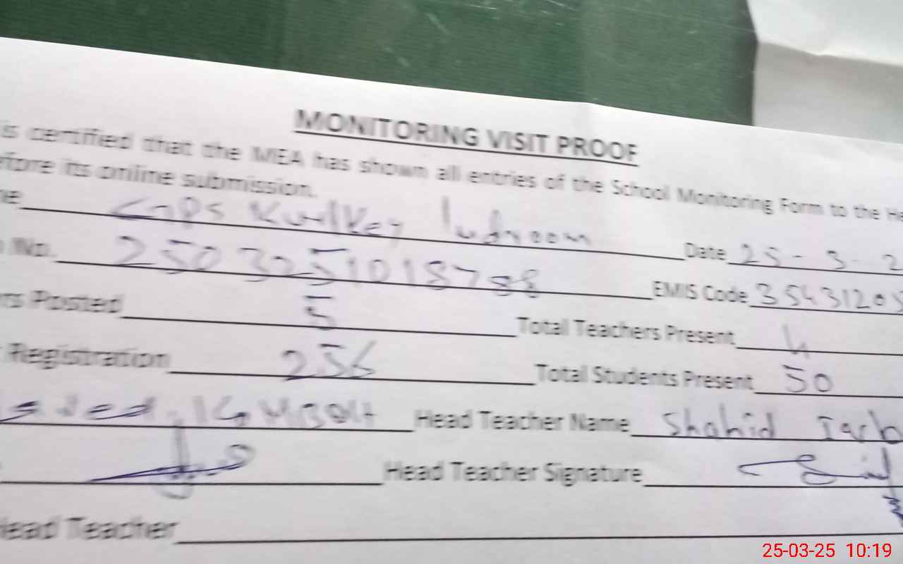 | EMIS Code: 35431205 | Name of School: GPS KURLKEY ANDROON | |||