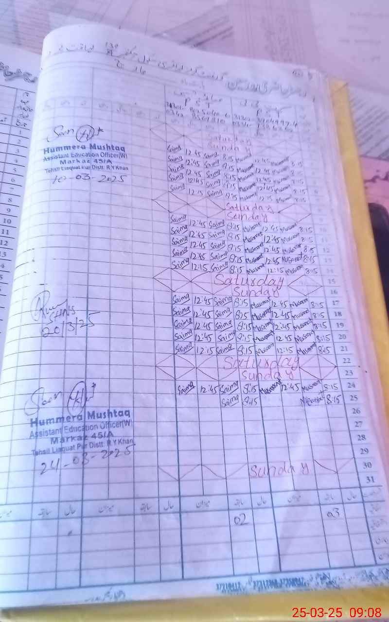 | District: RAHIMYAR KHAN | Tehsil: LIAQATPUR | Markaz: 45/A-FEMALE | Level: Primary | |