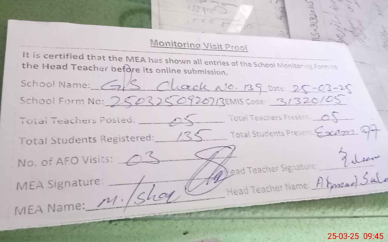 | EMIS Code: 31320105 | Name of School: GPS CHAK 139/A | |||