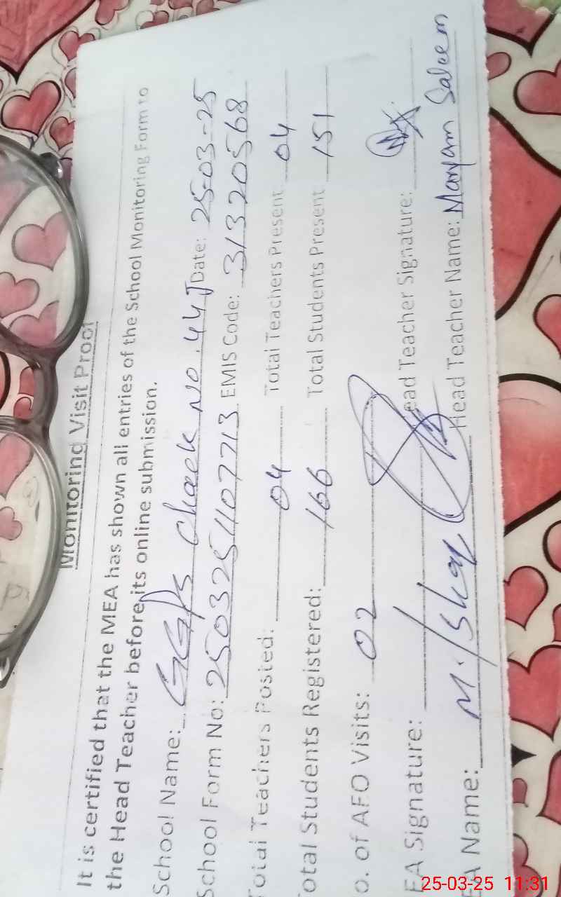 | EMIS Code: 31320568 | Name of School: GGPS CHAK 44/A JADEED | |||