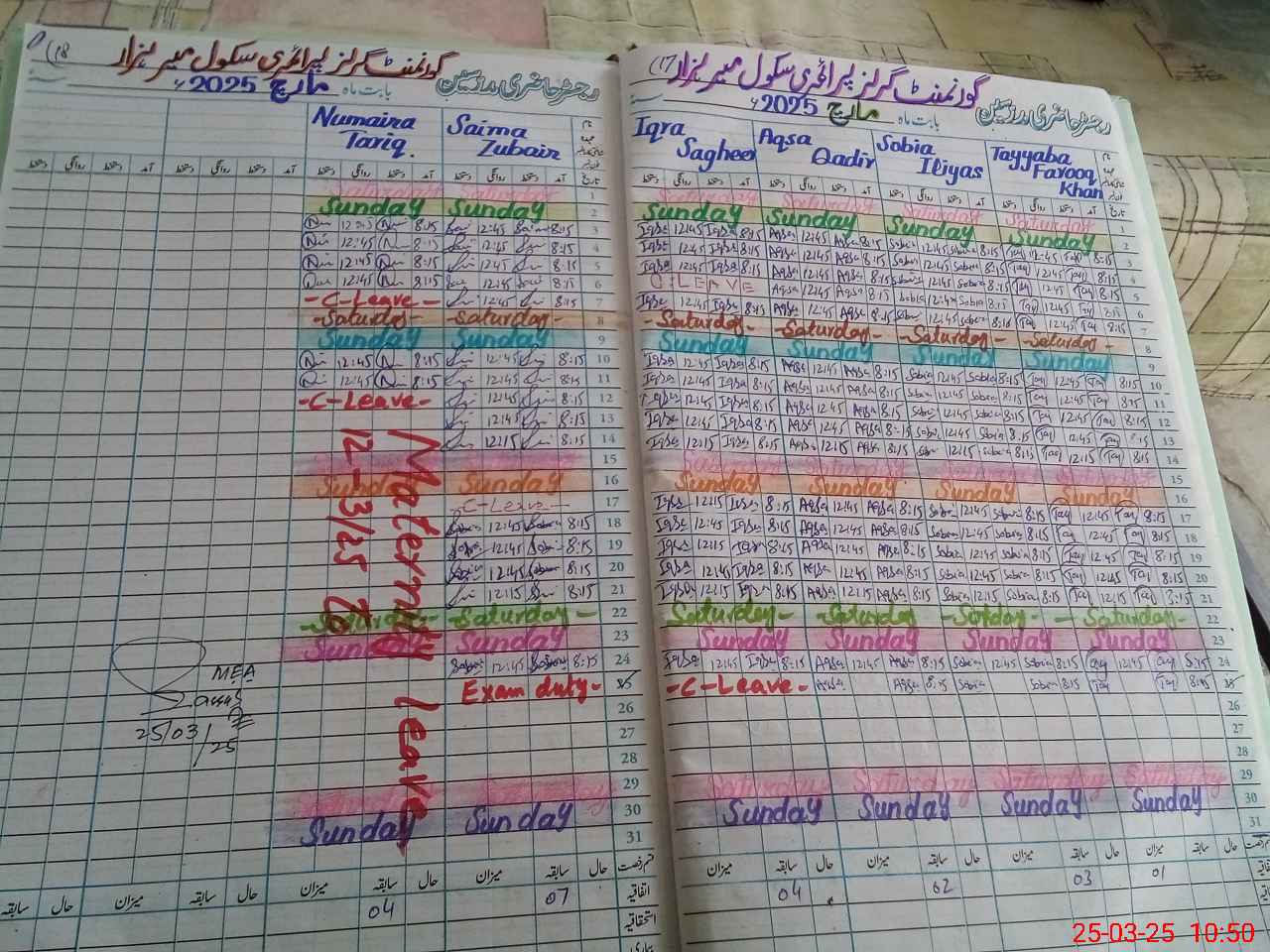 | Leave | Duty | Absent | Maternity | Medical | Ex- Pak |
