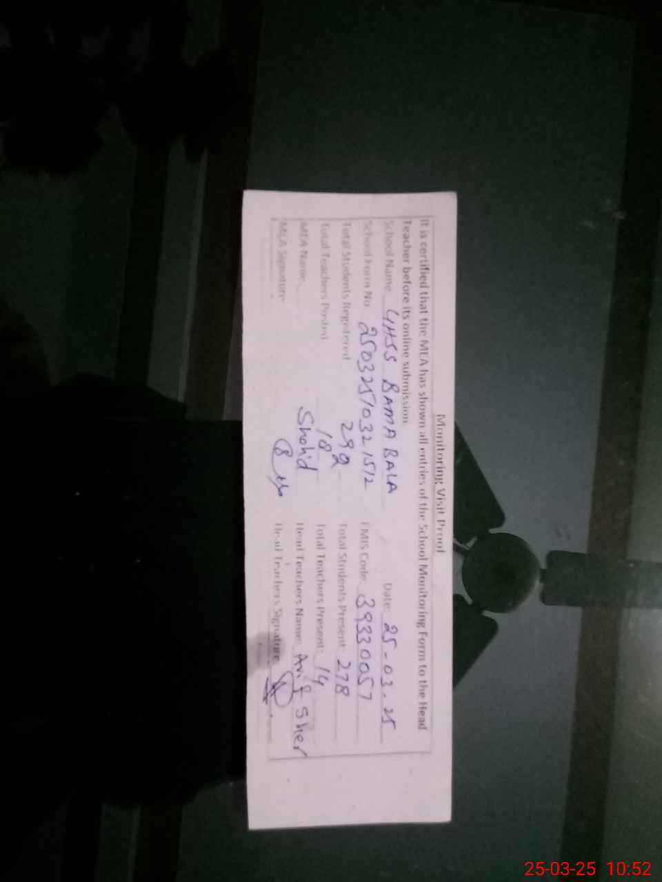 | Certified that this School was Inspected by the Undersigned MEA/DMO Today and the Information Stated Above is as Per Record. | |||||