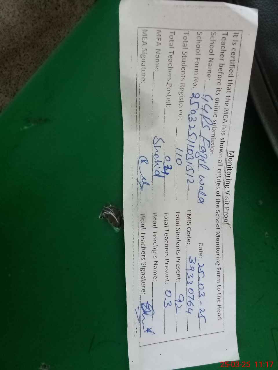| EMIS Code: 39330764 | Name of School: GGPS CHAK FAZAL WALA | |||