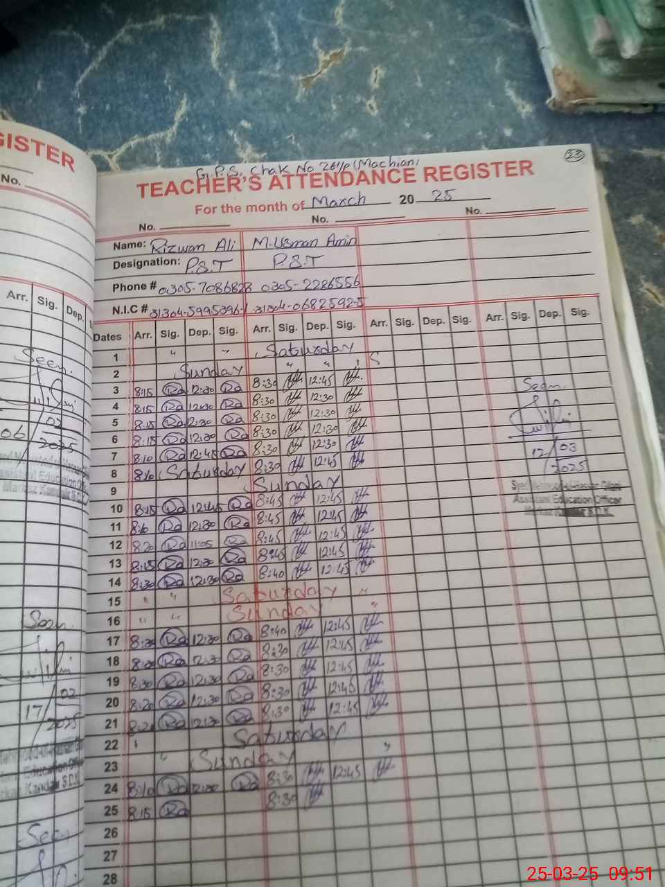 | Name: Ri**** Al**** Designation: (School Headmaster's/Headmistress's) PST Phone/Cell Number: 03**** |