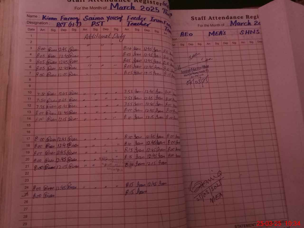 | 36**** | Ki**** Sh**** | PST | Regular | 0 | 0 | 0 | 0 | 0 | 0 | 0 | 0 | 0 | Exam Duty |