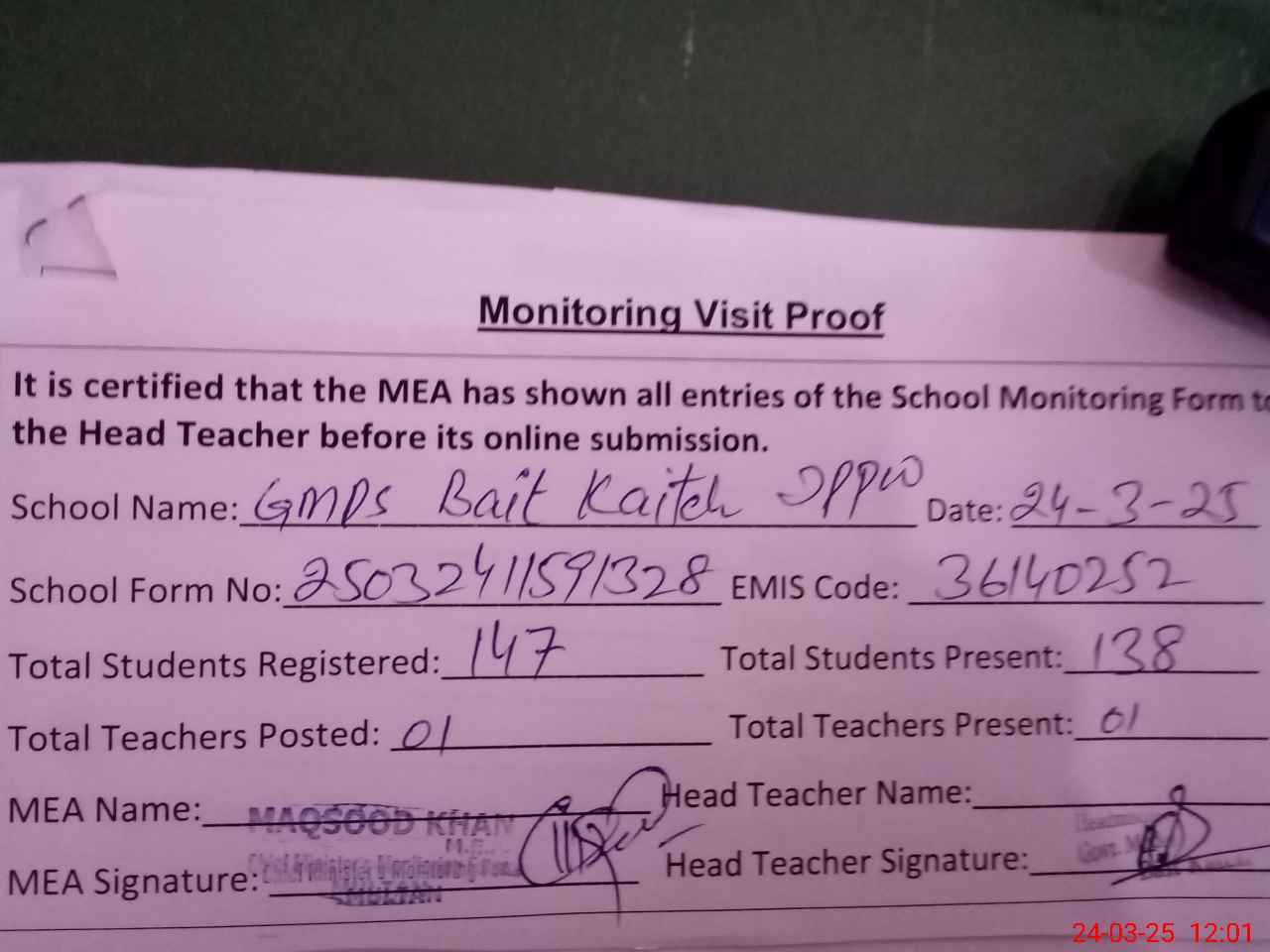 | EMIS Code: 36140252 | Name of School: GMPS BAIT KAITCH | |||