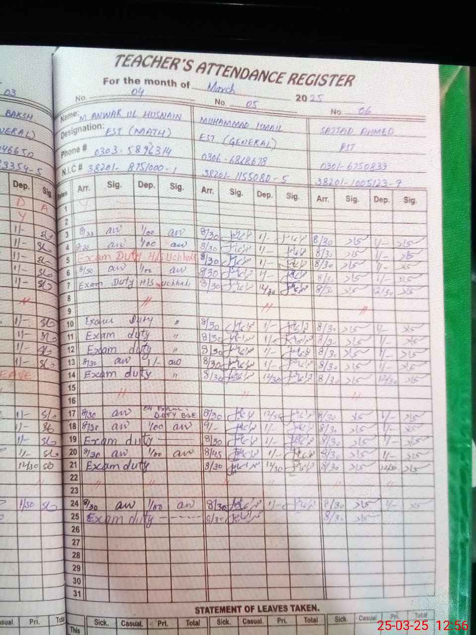 | 38**** | Mu**** An**** UlHa**** | EST | Regular | 0 | 0 | 0 | 0 | 0 | 0 | 0 | 0 | 0 | Exam Duty |