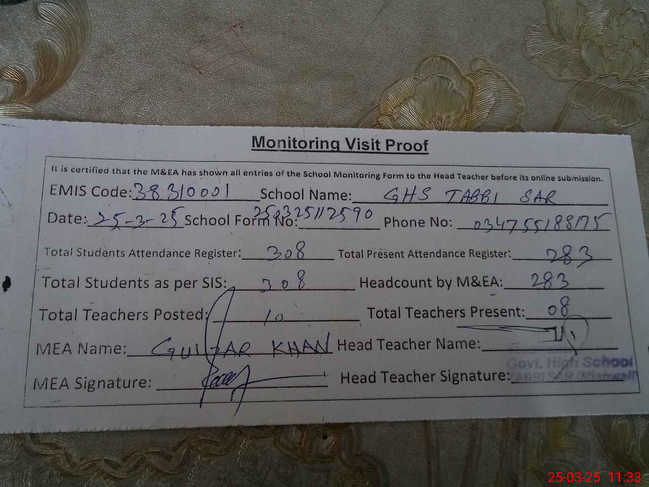 | EMIS Code: 38310001 | Name of School: GHS TABBI SAR | |||
