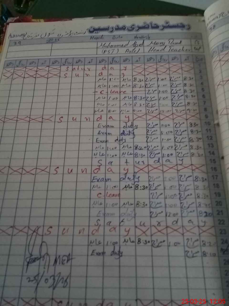 | 38**** | Mu**** Ab**** | 1 | 1 | 0 | 0 | 0 | 0 | 0 | 0 | 0 | 1 | Exam Duty | |