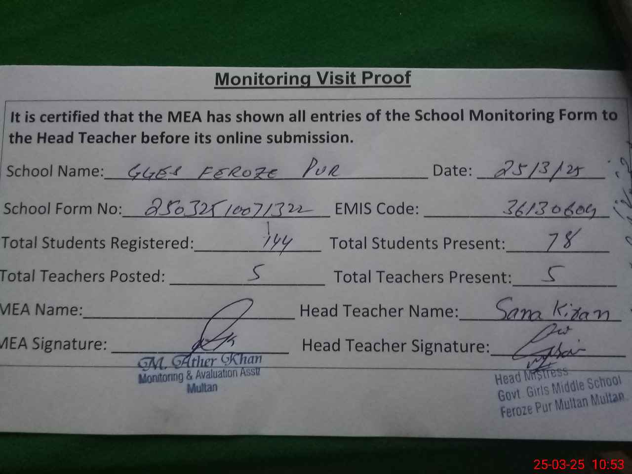 | EMIS Code: 36130604 | Name of School: GGES FEROZ PUR MULTAN | |||