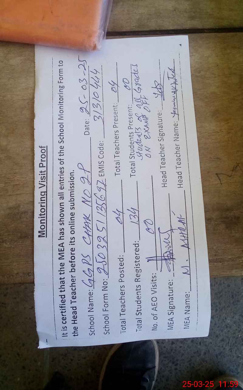 | EMIS Code: 31310444 | Name of School: GGPS CHAK NO. 2/P | |||
