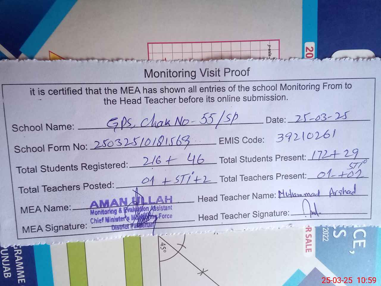 | EMIS Code: 39210261 | Name of School: GPS CHAK NO. 55 SP | |||