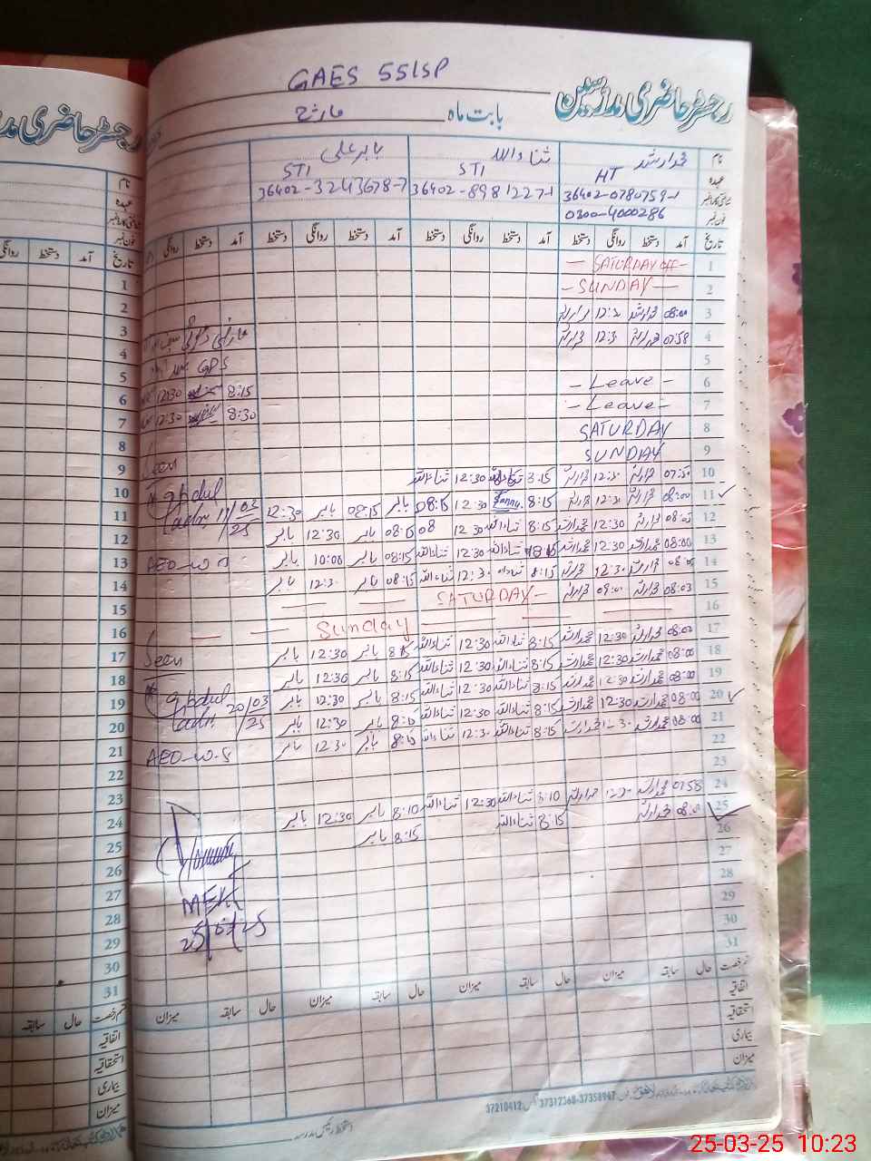 | Name: Mu**** Ar**** Designation: (School Headmaster's/Headmistress's) PST Phone/Cell Number: 03**** |