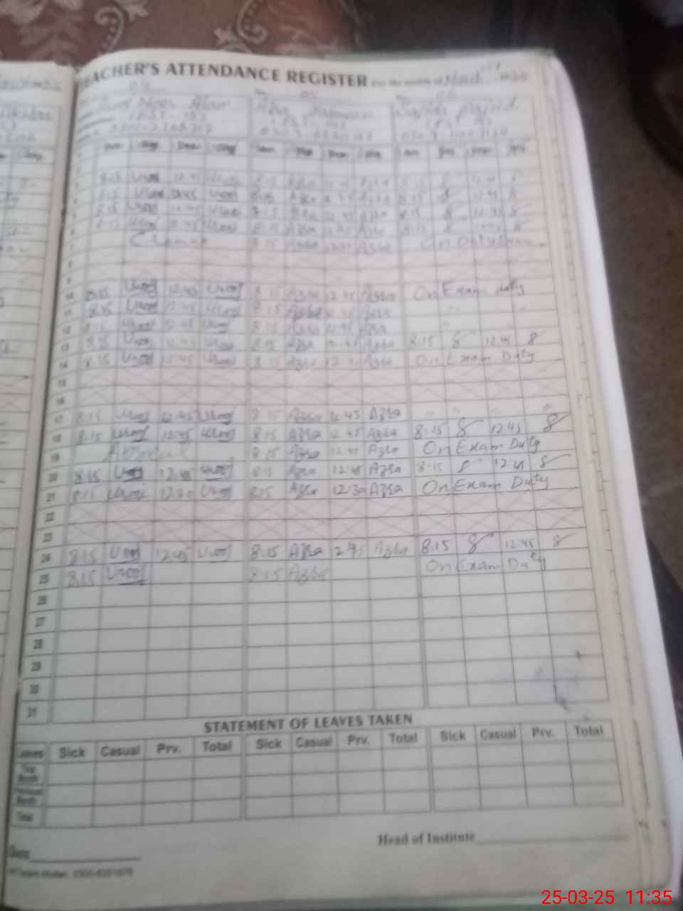 | 36**** | Sa**** Na**** | PST | Regular | 0 | 0 | 0 | 0 | 0 | 0 | 0 | 0 | 0 | Exam Duty |