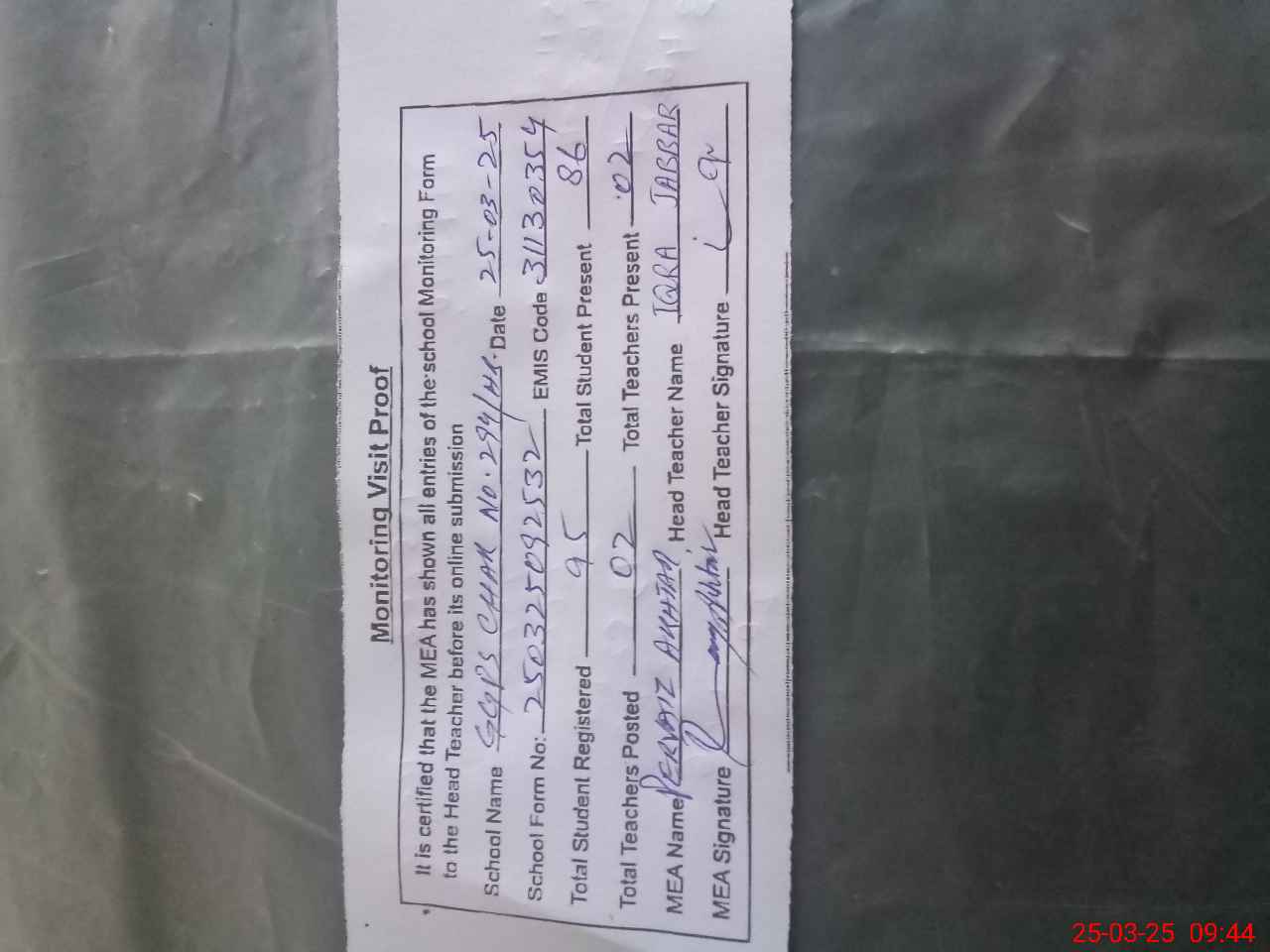| Certified that this School was Inspected by the Undersigned MEA/DMO Today and the Information Stated Above is as Per Record. | |||||