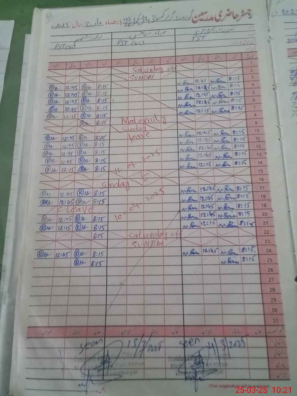 | 31**** | Sa**** Ra**** | PST | Regular | 28 | 0 | 0 | 0 | 0 | 0 | 0 | 0 | 28 | Maternity |