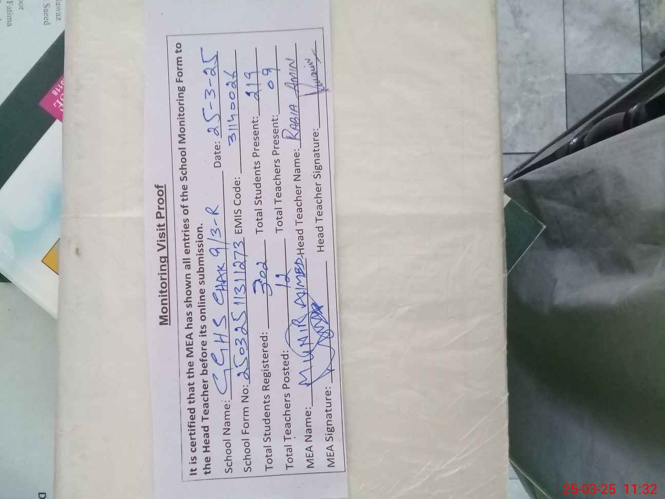 | EMIS Code: 31140026 | Name of School: GGHS CHAK NO 9/3-R | |||