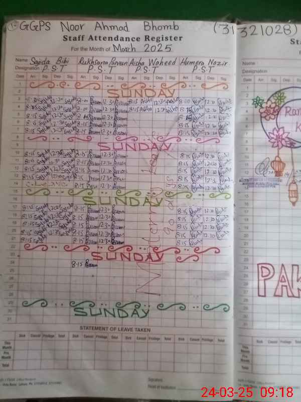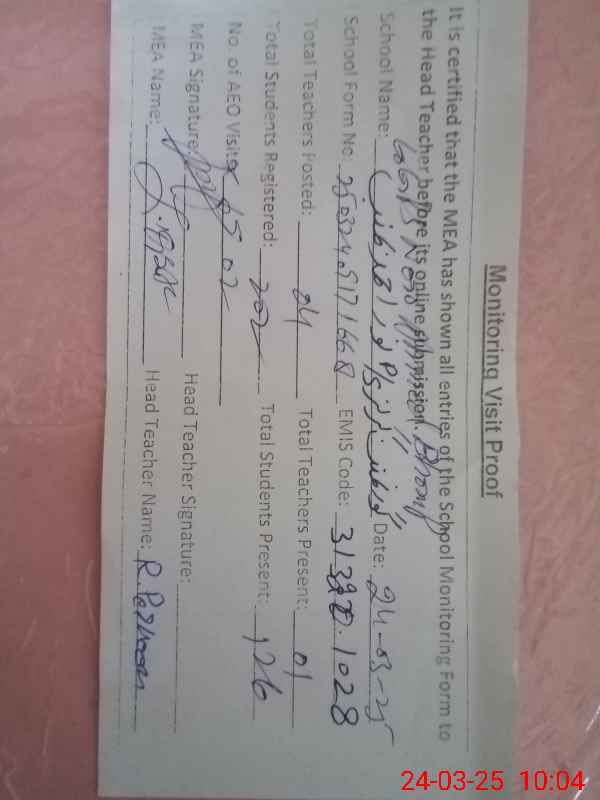 | EMIS Code: 31321028 | Name of School: GGPS NOOR AHMED BHOMB | |||