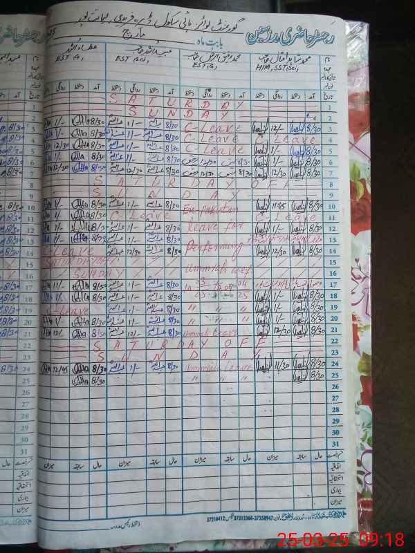 | 31**** | Mu**** Ab**** Ak**** | 3 | 1 | 0 | 0 | 0 | 0 | 0 | 0 | 0 | 0 | 0 | Exam Duty |