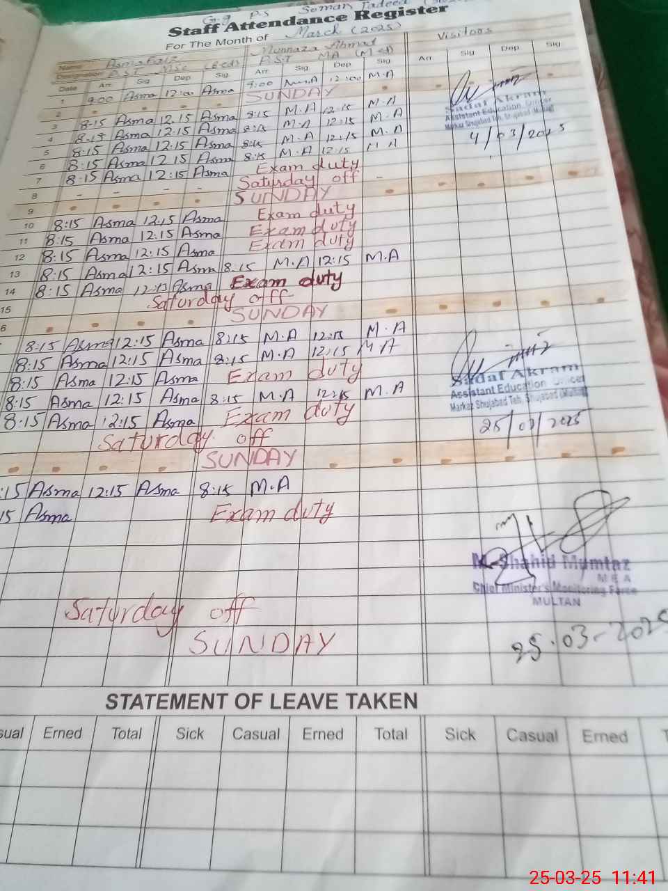 | 36**** | Mu**** Ah**** | PST | Regular | 0 | 0 | 0 | 0 | 0 | 0 | 0 | 0 | 0 | Exam Duty |