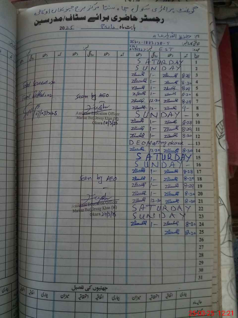 | Name: HAl**** Ya**** Ab**** Designation: (School Headmaster's/Headmistress's) EST Phone/Cell Number: 03**** |