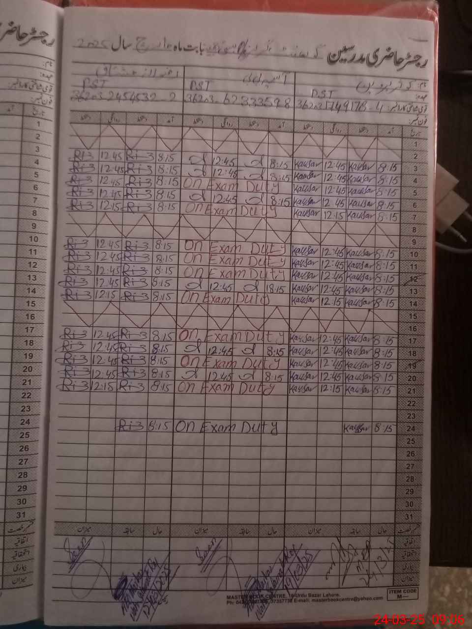 | CNIC | Full Name | Designation | R/C | Absence During Last Calender Month |