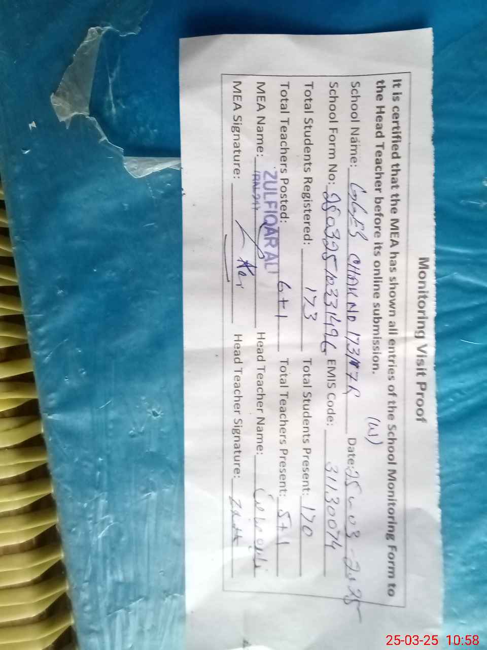 | Certified that this School was Inspected by the Undersigned MEA/DMO Today and the Information Stated Above is as Per Record. | |||||