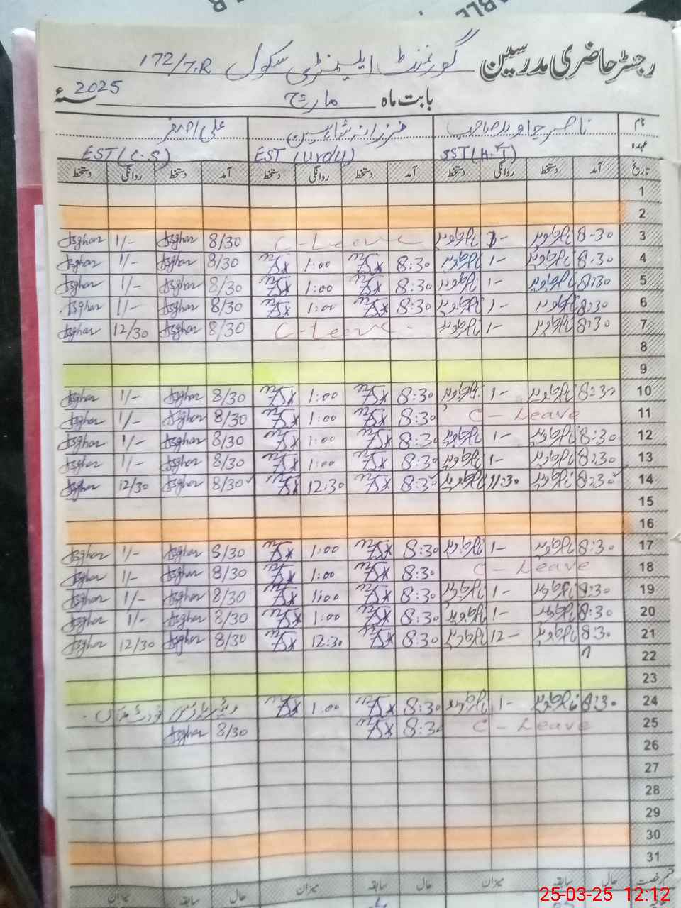 | CNIC | Full Name | Designation | R/C | Absence During Last Calender Month |