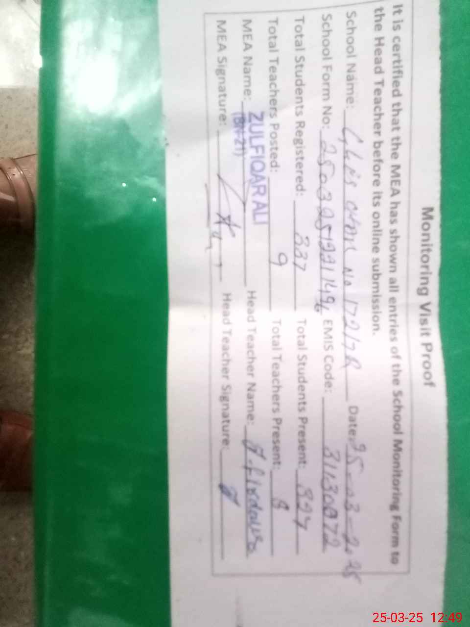 | Certified that this School was Inspected by the Undersigned MEA/DMO Today and the Information Stated Above is as Per Record. | |||||