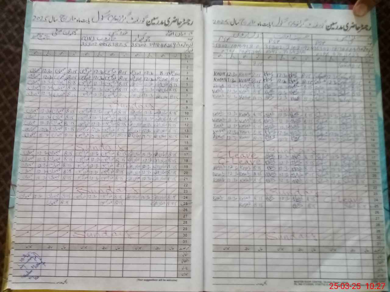 | CNIC | Full Name | Designation | R/C | Absence During Last Calender Month |