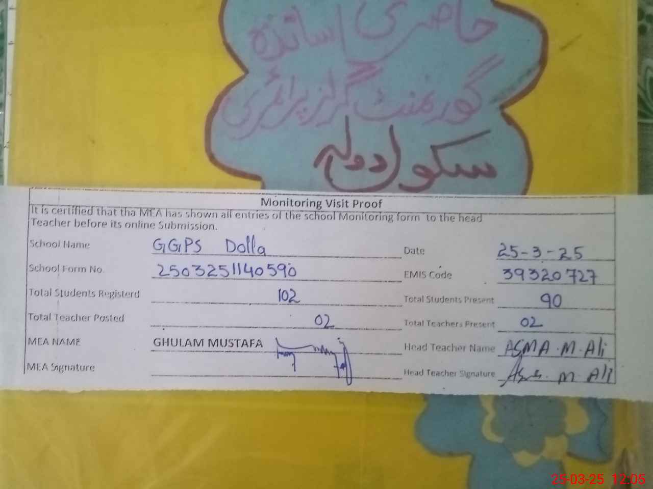 | EMIS Code: 39320727 | Name of School: GGPS DOLLA | |||