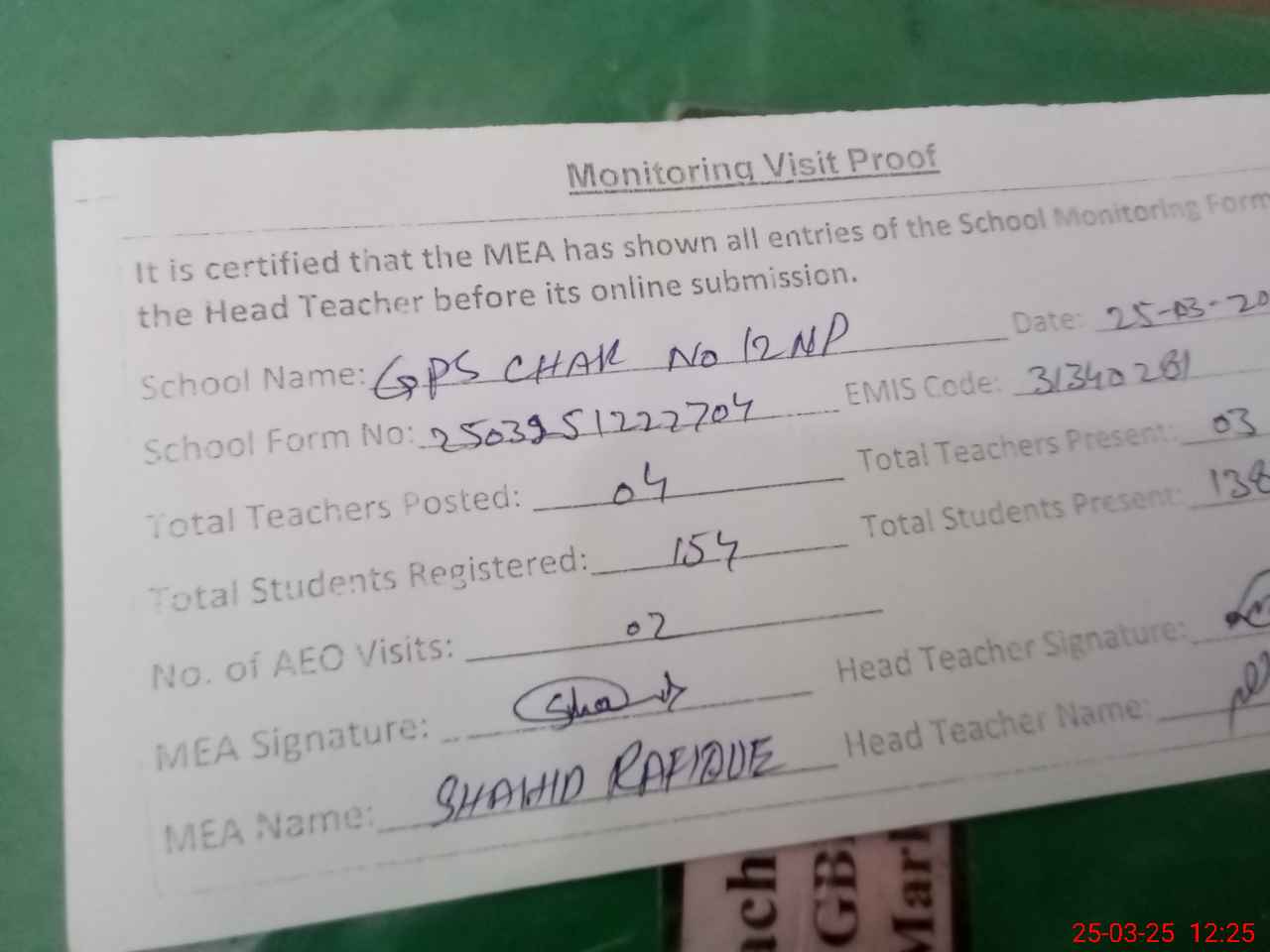 | EMIS Code: 31340281 | Name of School: GPS CHAK NO 12 NP | |||