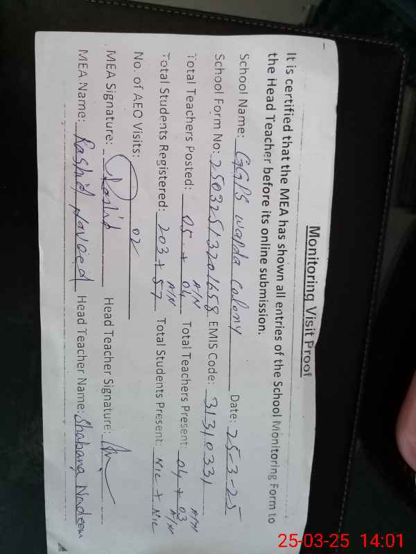 | EMIS Code: 31310331 | Name of School: GGPS WAPDA COLONY (After Noon) | |||