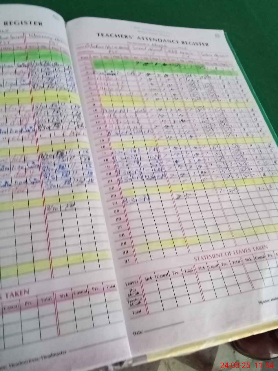 | Leave | Duty | Absent | Maternity | Medical | Ex- Pak |