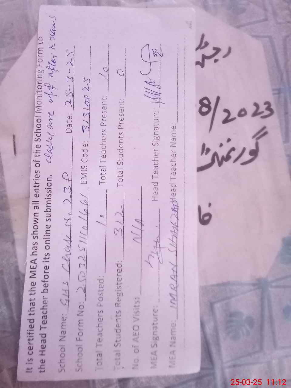 | EMIS Code: 31310025 | Name of School: GHS CHAK NO. 23/P | |||