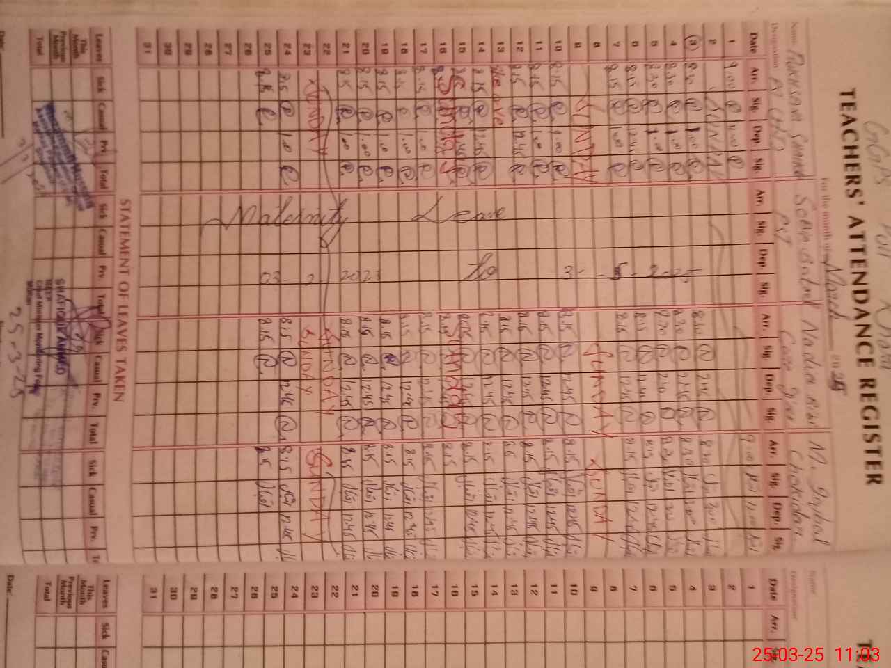 | Leave | Duty | Absent | Maternity | Medical | Ex- Pak |
