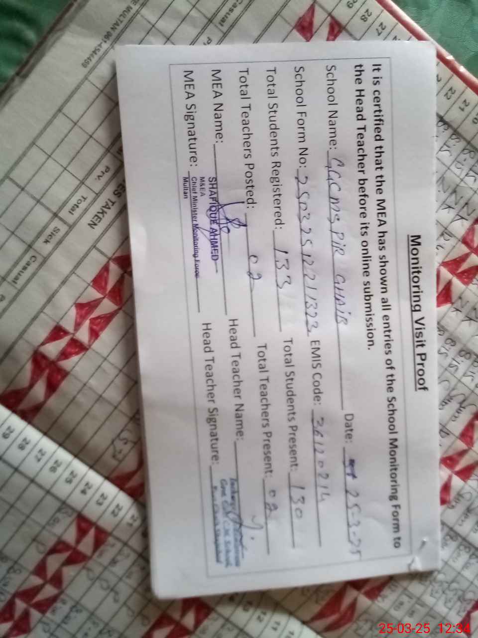 | EMIS Code: 36120214 | Name of School: GGCMS PIR GHAIB P/O SHUJABAD | |||