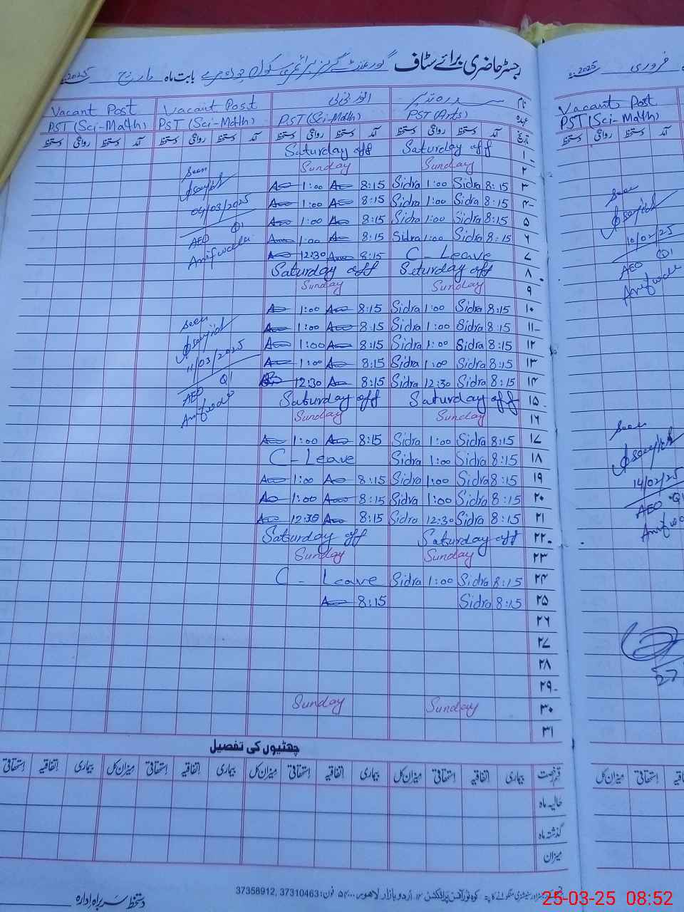 | Name: SI**** NA**** Designation: (School Headmaster's/Headmistress's) PST Phone/Cell Number: 03**** |