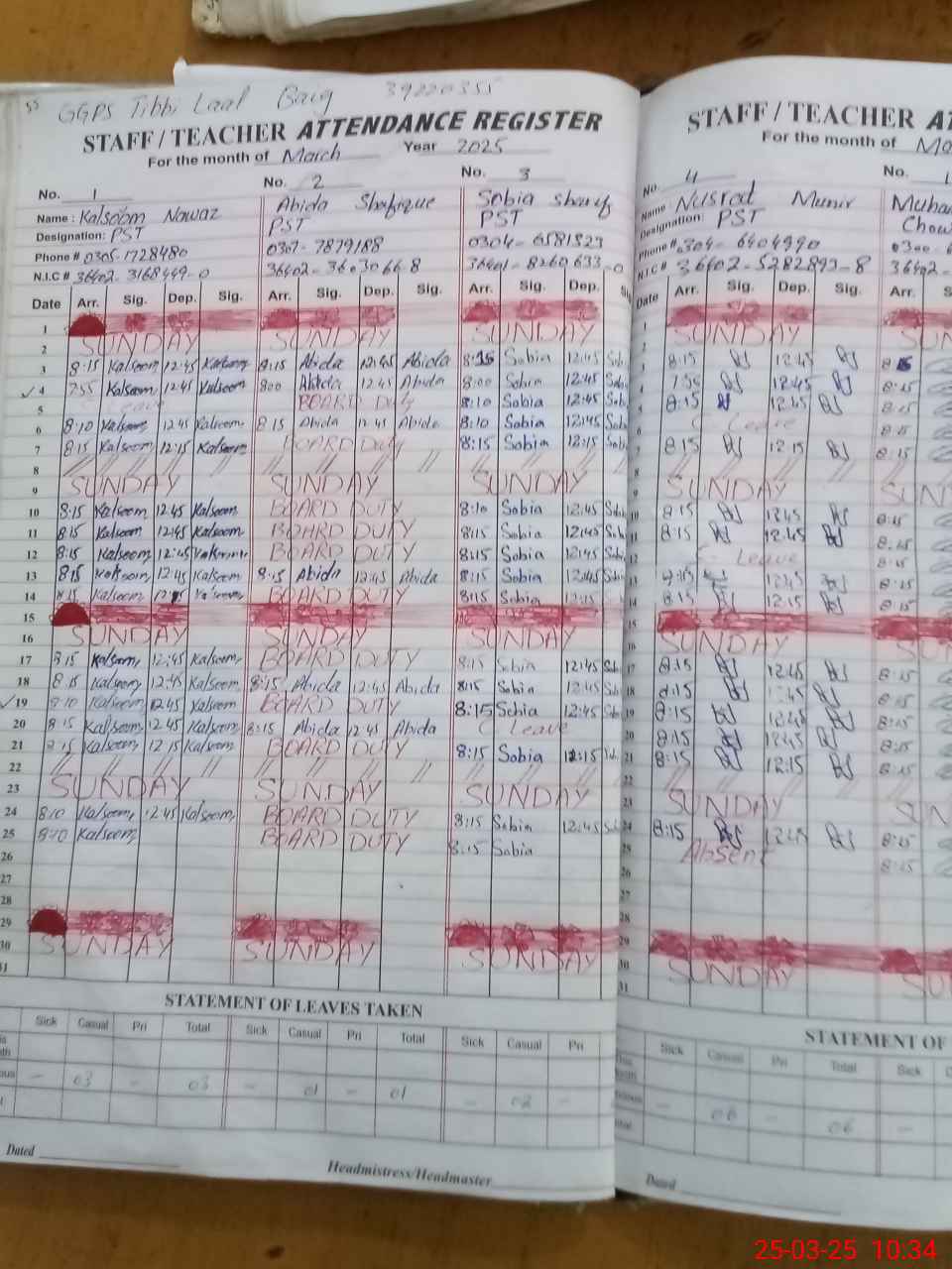 | 36**** | Ab**** Sh**** | PST | Regular | 1 | 0 | 0 | 0 | 0 | 0 | 0 | 0 | 1 | Exam Duty |