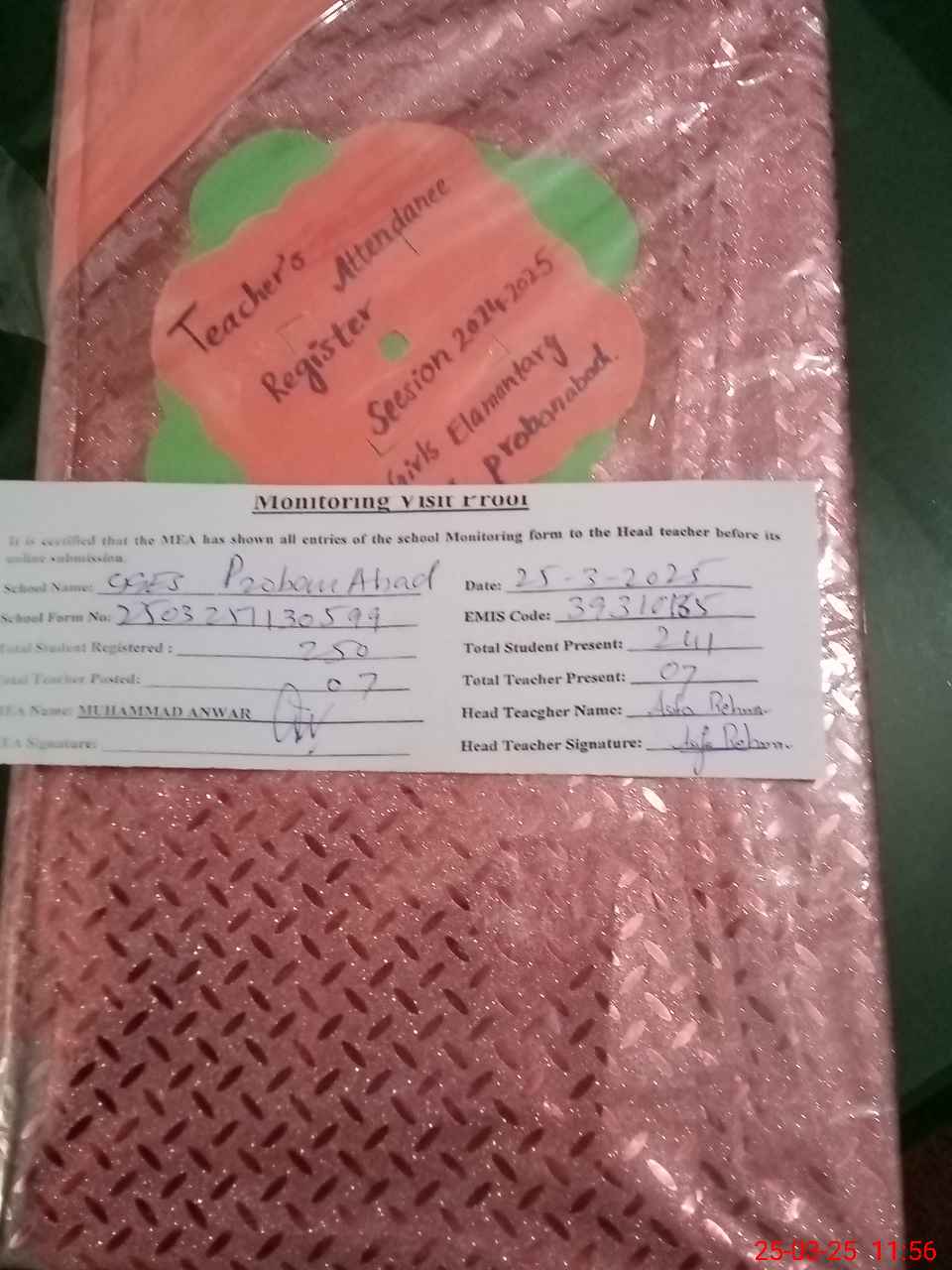 | Attendance Register | Head Teacher | MEA with School | Visit Proof |