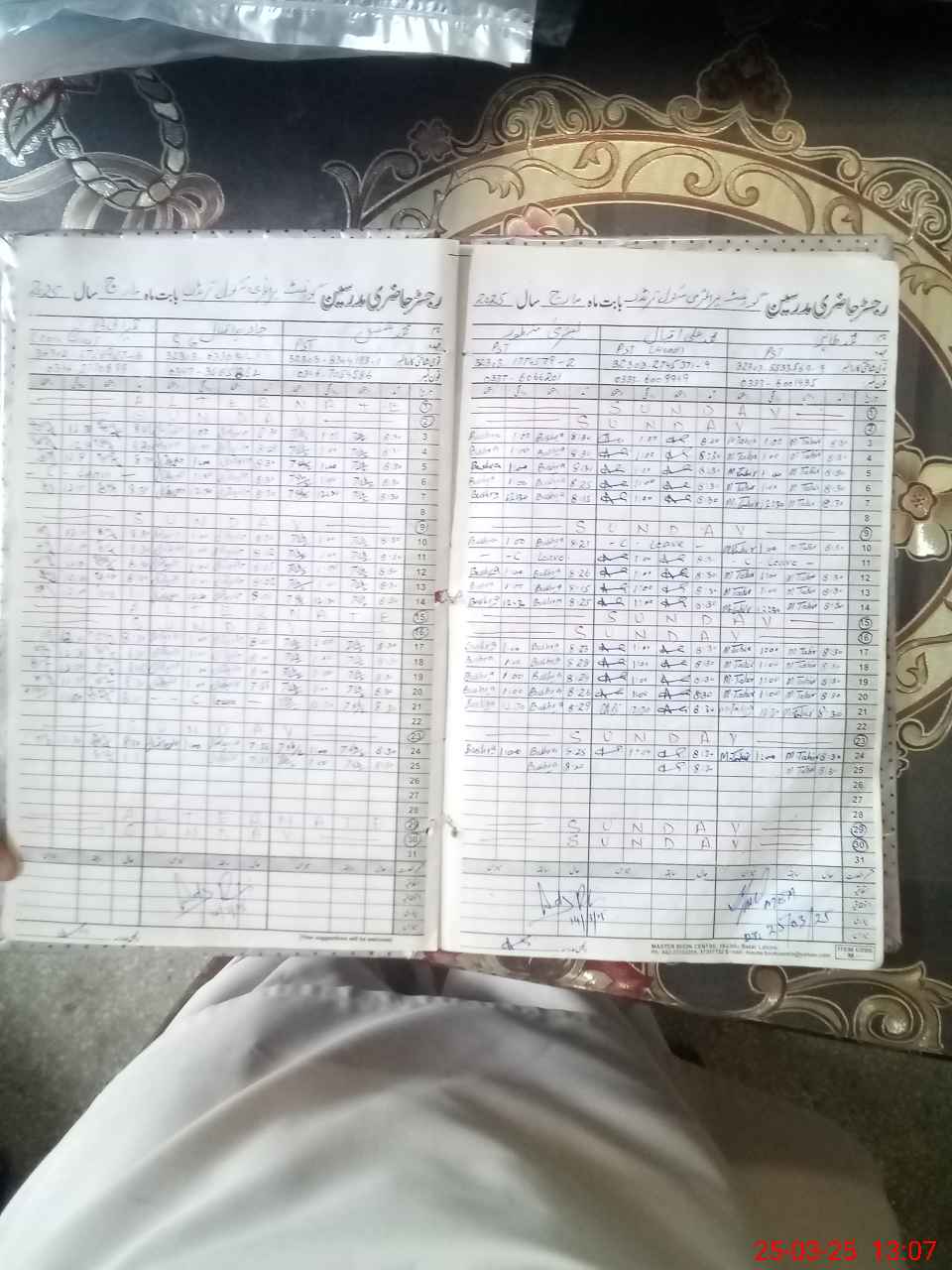| CNIC | Full Name | Designation | R/C | Absence During Last Calender Month |