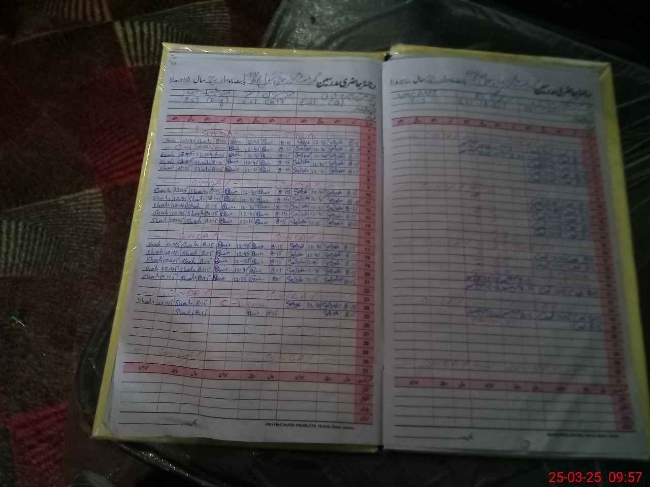 | CNIC | Full Name | Designation | R/C | Absence During Last Calender Month |