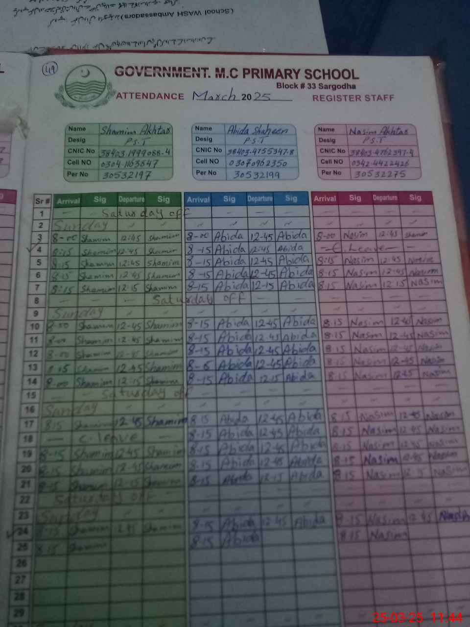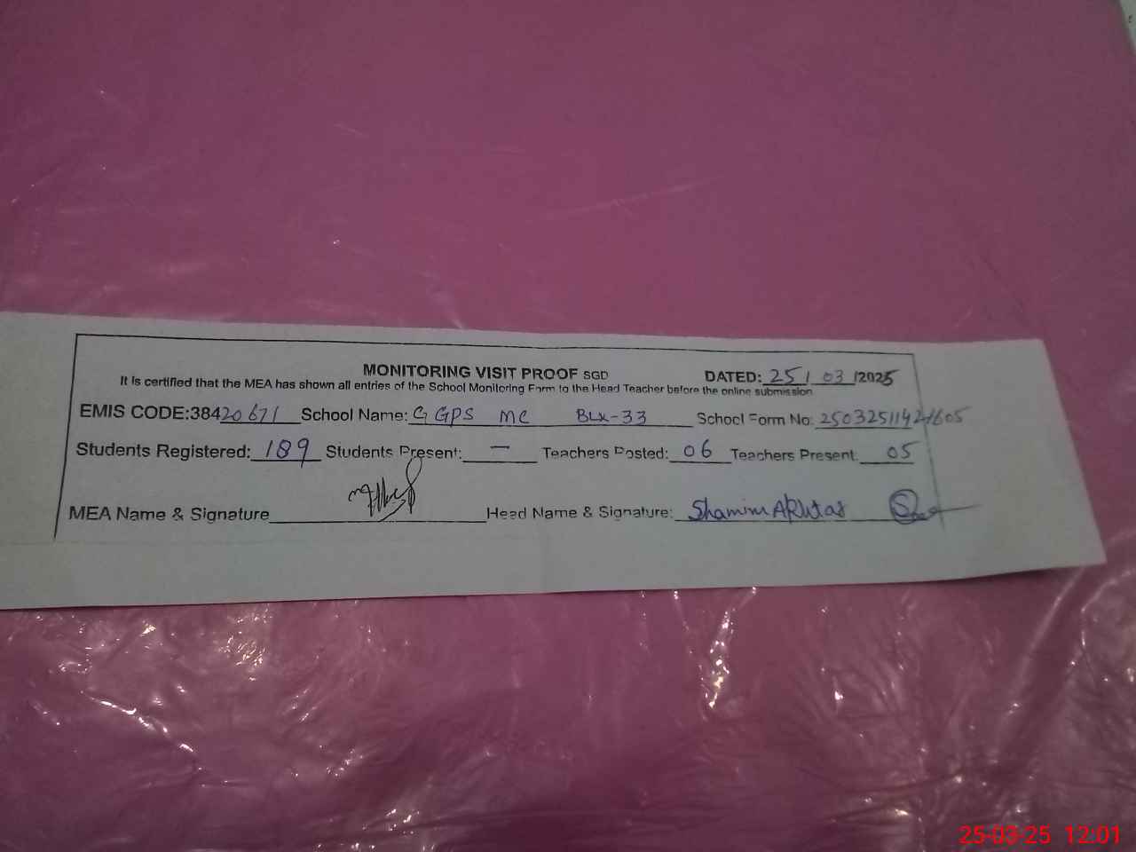 | EMIS Code: 38420671 | Name of School: GGPS MC BLOCK NO.33 SARGODHA | |||