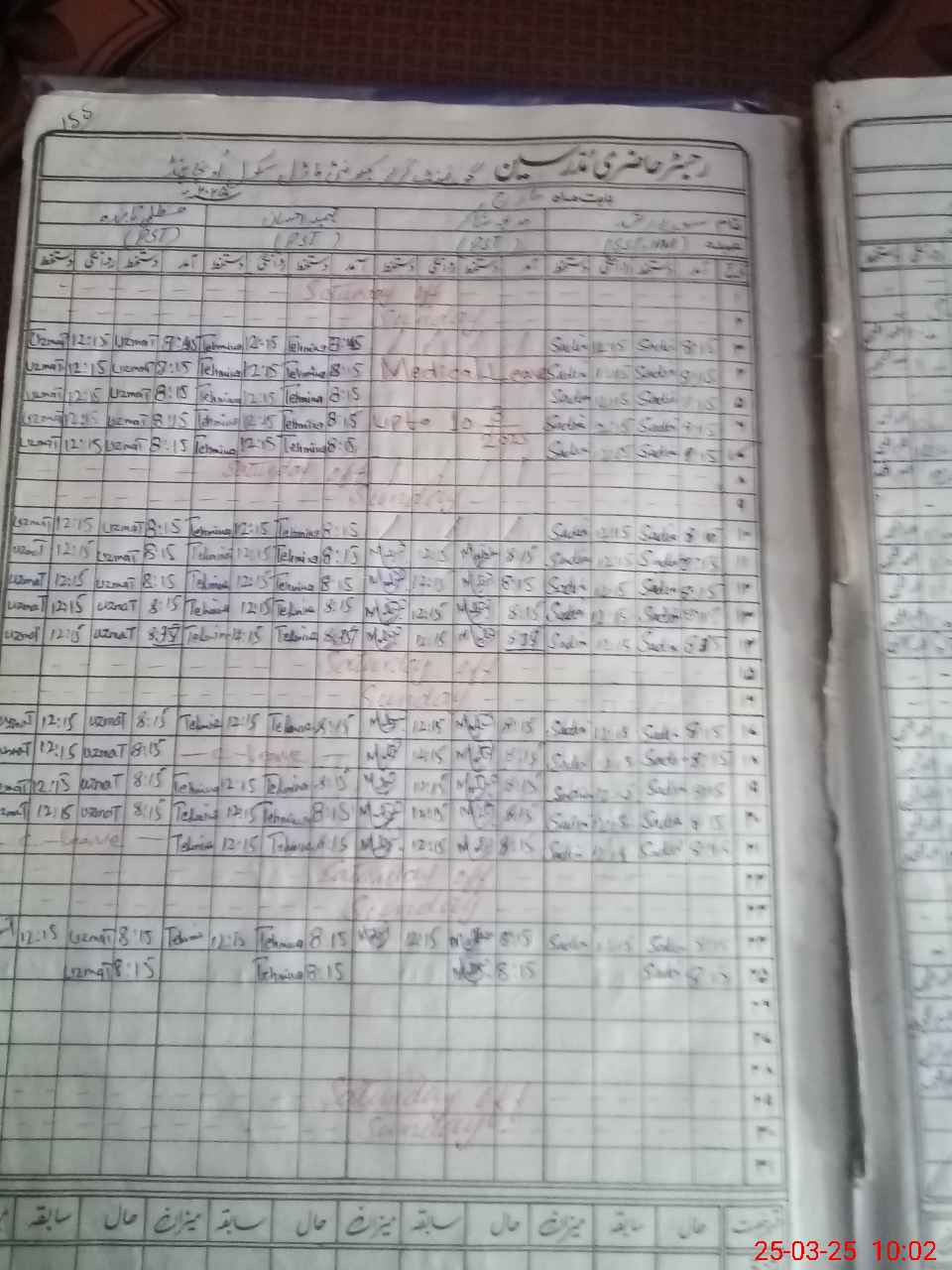 | Leave | Duty | Absent | Maternity | Medical | Ex- Pak |