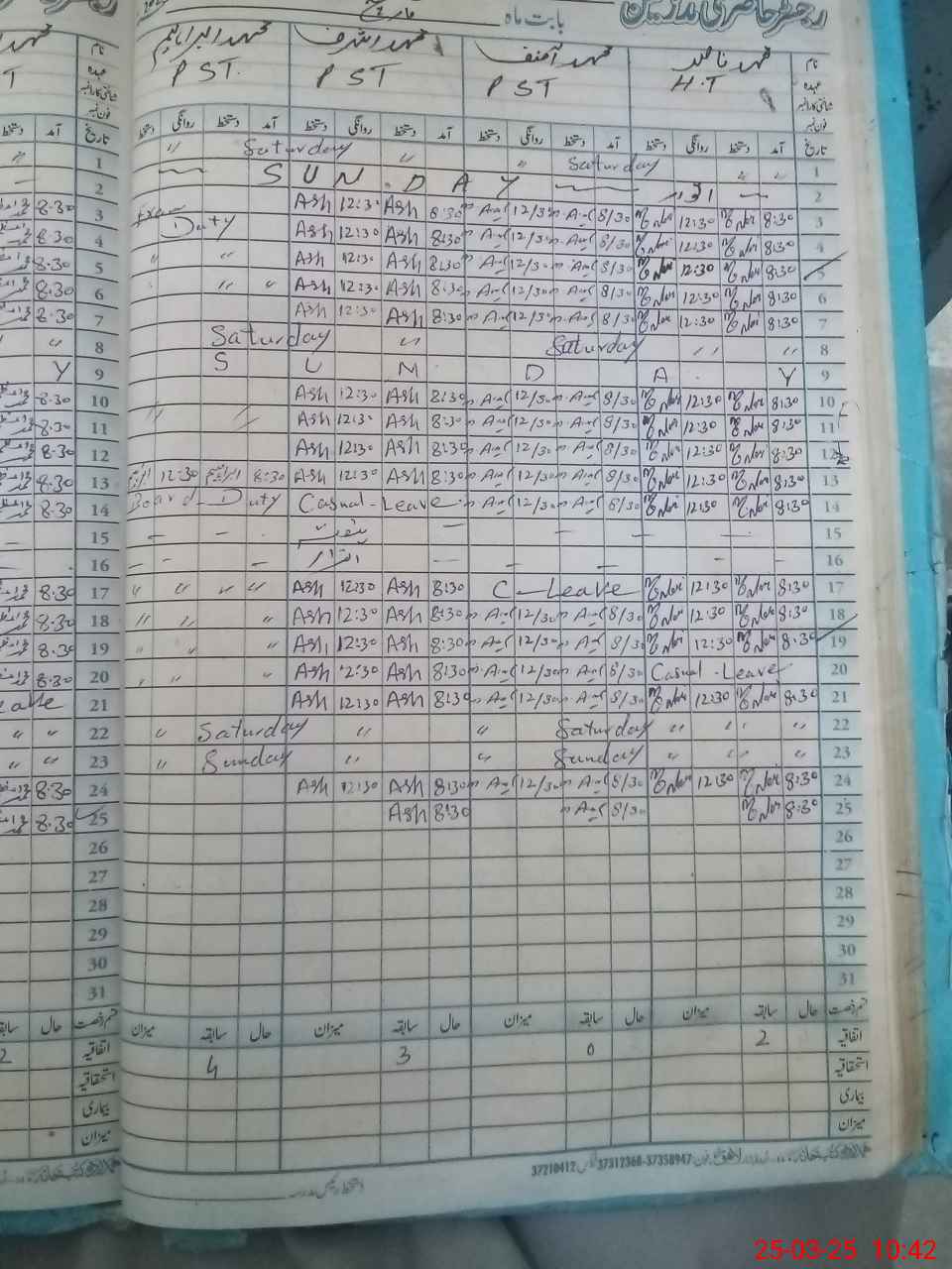 | 35**** | Mu**** Ib**** | PST | Regular | 0 | 0 | 0 | 0 | 0 | 0 | 0 | 0 | 0 | Exam Duty |
