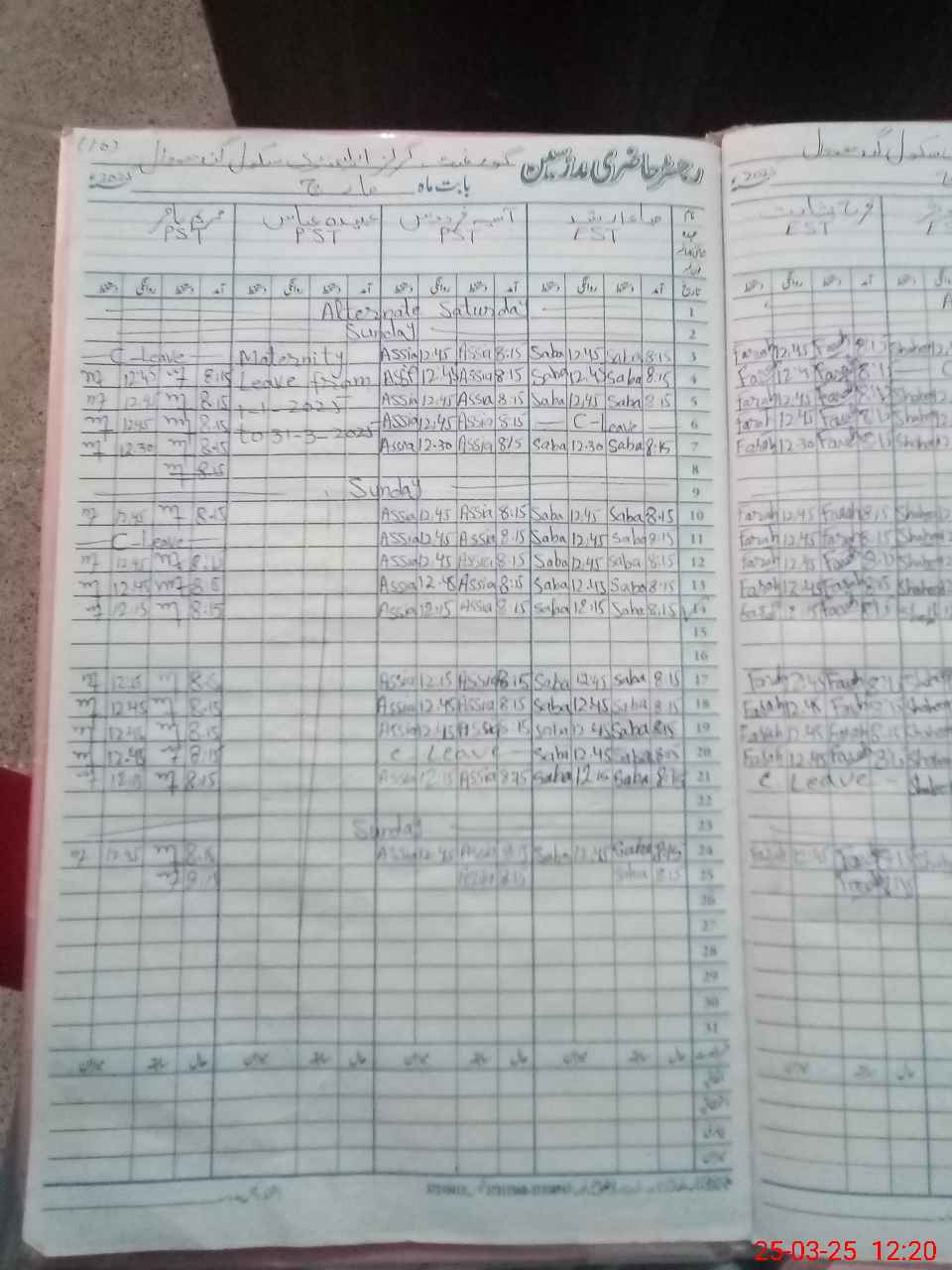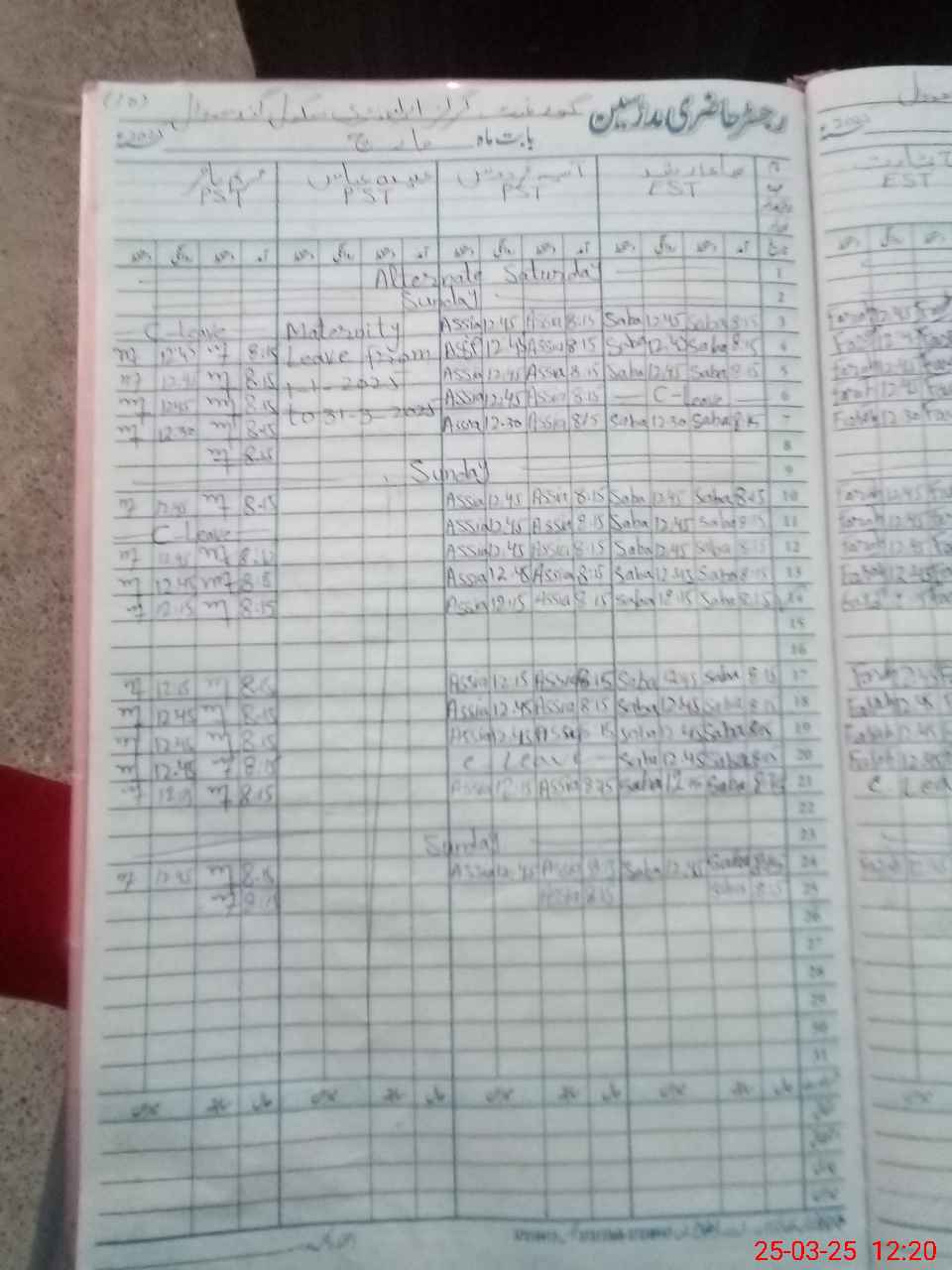 | 34**** | Ab**** Ab**** | PST | Regular | 28 | 0 | 0 | 28 | 0 | 0 | 0 | 0 | 0 | Maternity |