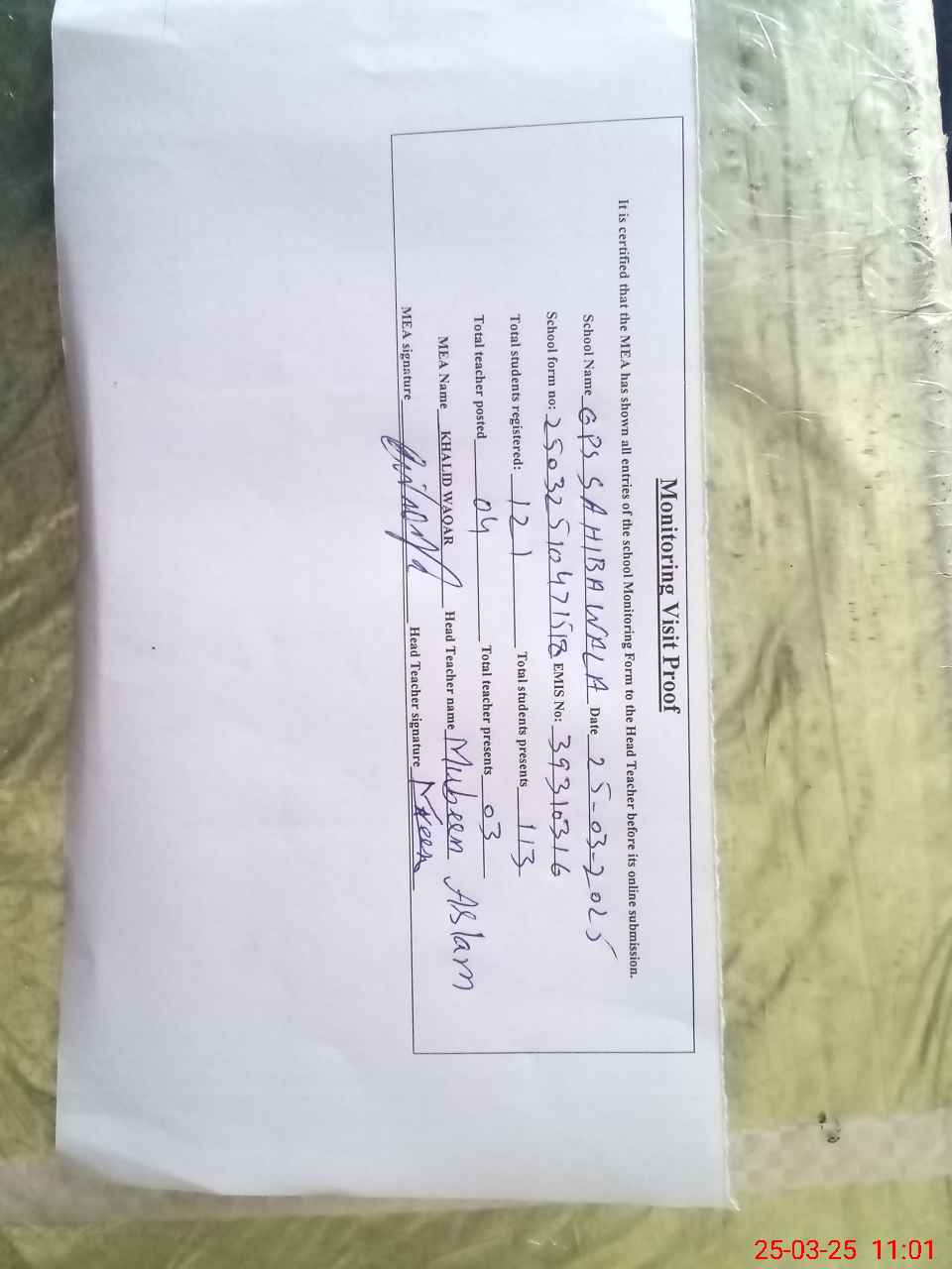 | EMIS Code: 39310316 | Name of School: GPS SAHIBA WALA | |||